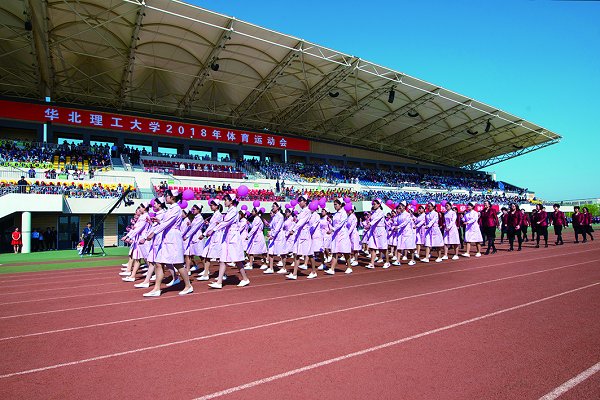 在热烈的掌声中,校党委书记刘晓平宣布:华北理工大学2018年体育运动会开幕!