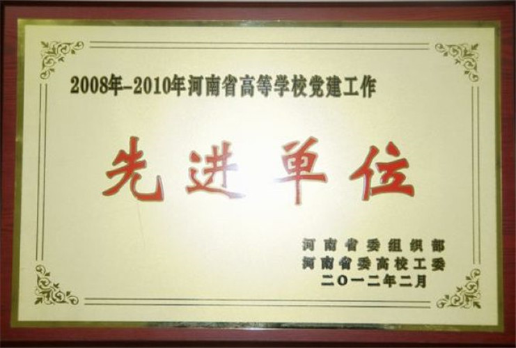 学校党委先后荣获“河南省高等学校先进党委”“河南省高等学校党建工作先进单位”“全省创先争优先进基层党组织”“全省先进基层党组织”等称号,《人民日报》《光明日报》《党建》《河南日报》《党的生活》等媒体多次报道学校党建工作经验和做法。