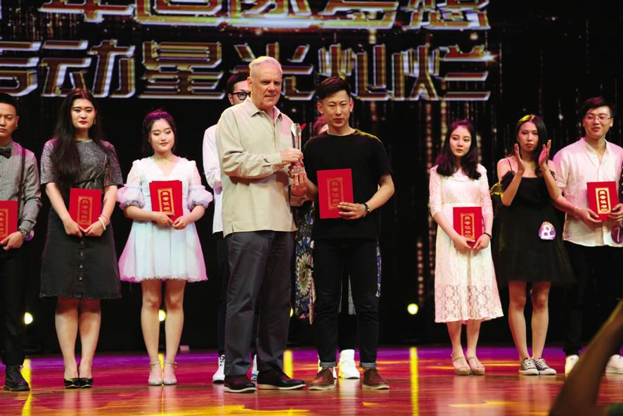美国漫画家协会成员、 著名插画师、 网页设计师乔 · 麦凯里, 卢克 · 麦凯里为获得优秀歌手的选手颁奖。 摄影赵鹏