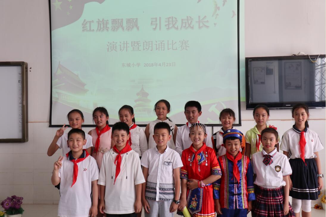 《蒲公英》 - 第1期 “红旗飘飘,引我成长”演讲暨朗诵比赛 2018-05-28T01:31:13.000Z 422 2018年4月23日下午,我校四、五年级在环雅校区阶梯教室举行了“红旗飘飘,引我成长”演讲暨朗诵比赛,这是我校学习宣传贯彻党的十九大精神而组织开展的系列主题教育活动之一。 比赛前,各班开展了“红旗飘飘,引我成长”的主题队会,并经过逐层比试,每个中队选出演讲、朗诵选手各一名。选手们个个自信、大方、富有激情。精彩的演讲和朗诵博得了观众们一阵阵热烈的掌声。最终来自四(2)中队的王茜玥和五(3)中队的白浩源、温嘉玉获演讲一等奖,四(2)中队的常馨玥、代欣玥和五(5)朱羿臣获朗诵比赛第一名。