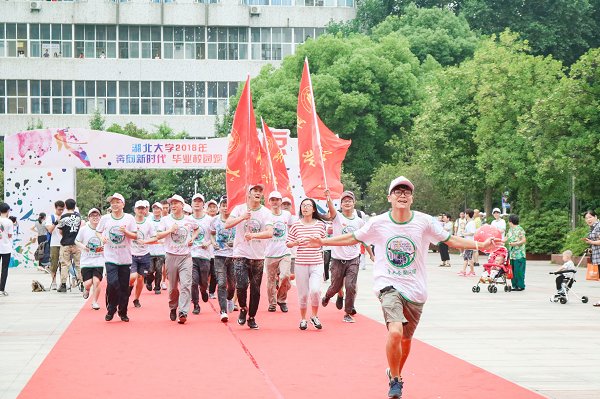 当天的阳逻校区装扮一新,毕业祝福标语随处可见,校园广播里毕业歌曲响彻校园。下午2时许,在简短的热身运动后,曾在阳逻校区就读的12个学科性学院的36名毕业生代表穿着湖北大学定制文化衫,手擎校旗、院旗,在校党委副书记侯勇带领下,沿着学校正门、习苑林、宿舍楼、问津苑、文化长廊、办公楼等地跑过。