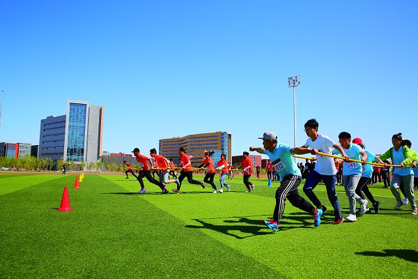 不同于秋季运动会,这次运动会在项目设置上多了大家熟悉的跳大绳。在跑道旁边,在规定的比赛时间内,参赛队员们冒着雨排好队,目不转睛地盯着在空中飞舞的大绳,瞄准时机,向前加速,脚步轻盈利落,飞快地越过大绳,一个接着一个。理学院本科一年级新生刘杨豪说:“跳大绳项目是班级同学一起活动,班里十几个同学一起训练和比赛的过程很有乐趣!”带着轻松的心态来比赛,留下了最美好的回忆,每个人都收获颇丰。用热情感染他人 为青春梦想加油看台上热情呐喊的啦啦队,是运动会上一道亮丽的风景线。“青春激昂,我心飞翔,地院骄子,再创辉煌!”看台上传来地球科学学院啦啦队那嘹亮的呐喊声。随着前奏鼓点节拍落下的瞬间,每个啦啦队员都将自己的道具整齐有力地举起并落下。地球科学学院本科一年级新生章笑宇说:“比赛前,我们都要集中训练,希望比赛时能给学院的参赛选手更多支持和鼓励。训练期间,时常连饭都顾不上吃,但是没有人抱怨,也没有人喊累,都想把我们学院的精气神儿喊出来。”