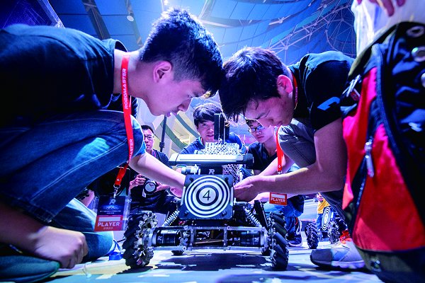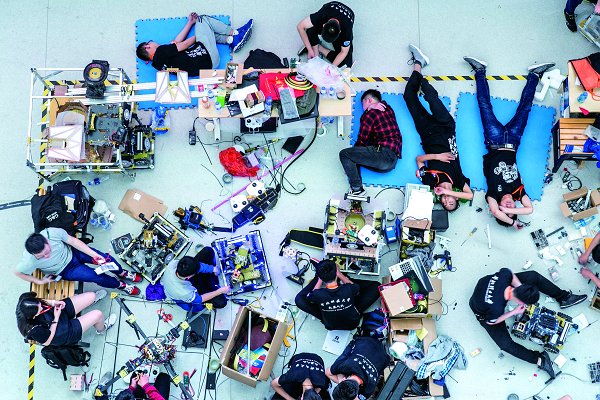 团队合作,情比金坚。斩获北部赛区冠军的山东科技大学SmartRobot队是一支2015年成立的“新兵”,主要由大一、大二本科生组成,比赛中,团队和2004年就已经创立的中国石油大学(北京)SPR队虽然是“敌人”,但在享受酣畅淋漓的比赛的同时,两个团队的队员也相互请教,共同总结经验,建立了珍贵的“亦敌亦友”情谊。获得亚军的哈尔滨工业大学I7Hiter代表队队长黄海说:“我们是一个精诚团结的团队,每个人都是团队的‘螺丝钉’,发挥着不可替代的作用。”SPR队的队长陈佳鹤回顾备赛经历如数家珍,临近比赛,他们要装设备、改代码、做试验、熬通宵赶工保证进度,经常在椅子上和衣而睡。比赛期间,参赛机器人视觉方面遇到问题,整个团队提心吊胆,经过一遍遍调试后恢复正常,全队都舒了一口气。