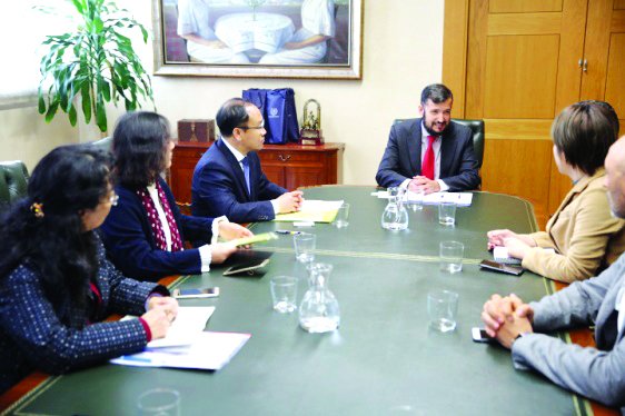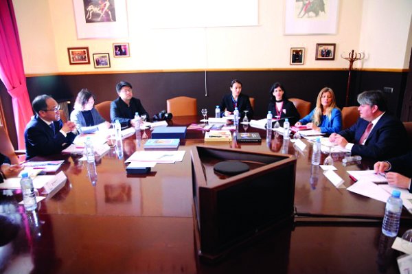 学校副校长J.EnriqueFernandezRedondo、国际事务部主任SorayaLozanoSanchez等接待了代表团一行。双方进行了会谈,各自介绍了院校的基本情况,双方还交流了学科建设、工作室教学经验、学科发展、课程设置等经验,就两校开展师生短期交流、合作举办大学生展、科研合作等项目进行了交流和沟通,并达成了合作意向。