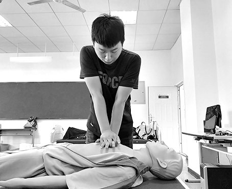 读大三的廖圳龙,大一时就参加了学校组织的急救培训,在医院见习时,又进一步练习过。他跪在太婆旁边,按照流程诊断:呼唤时没有意识、畅通呼吸道后耳听呼吸 没有动静、手压胸口没有跳动、手指触摸颈动脉没有搏动。