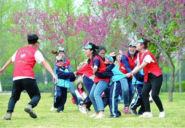 志愿服务是一个动态、双赢的过程。在帮助孩子们的同时,志愿者们也获得了自身的提高。大部分志愿者是独生子女,从小在父母的呵护下长大,没做过啥脏活累活。在参与到志愿服务中后,他们学会了为孩子们准备零食和休憩用品,提着游戏用的音响跟着精力旺盛的孩子们在植物园一跑几个小时,甚至为了方便与孩子们沟通,跪在地上陪他们玩。从这些活动中,他们收获的最重要的东西,就是与孩子们建立起深厚的感情,被孩子们喜爱着、依赖着,从而更坚定了自身的服务意识与责任意识,在潜移默化中培养了自己的家国情怀。