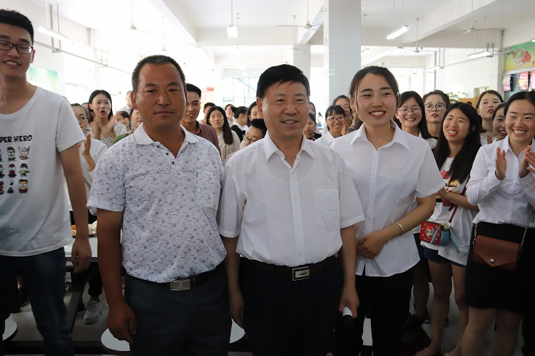 李昌武校长在餐厅与毕业生及家长合影