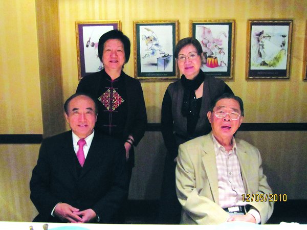 图1、萧万长接见李总裁;图2、王金平与李总裁及夫人(后右)、妻妹(后左)合影;图3、李总裁、林丰正(右)与漳浦县委书记陈汉夫叙乡情;图4、李总裁与吴敦义叙谈。 严利人
