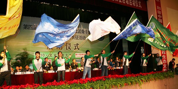启动仪式上,与会领导还为今年全国青少年绿色长征活动“雪域高原”、“黄河之旅”、“长江之歌”、“京杭运河”、“国宝家园”、“草原漫步”、“东北林海”、“黄金海岸”等团队线路授旗。