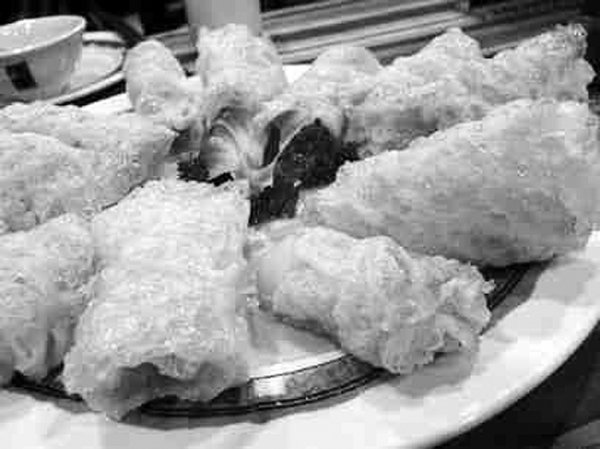 在一条条古旧的巷子中。被熏燎成烟灰色的黛墙下,摆开一个个小摊。摊主大都沉默———金黄的乳扇躺在那里,本身就是一声有力的吆喝。“牛奶烤成扇子卖”是“云南十八怪”之一,一小勺发酵的粘稠牛奶,在滚热的锅底上三盘两盘弄,竟就涨成扇子那么大,卷在竹签上倒也颇具气势。乳扇色灿香浓,酥嫩可口,入口即溶,甜而不腻,直令人欲罢而不能。