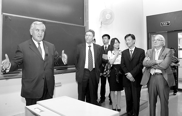 法国政府、法国中央理工 大学、法国企业和中国政府、 北京航空航天大学以及中国 企业一起合作,建立起一所新 颖的独具创造力的学院,这就 是你们所代表的;这种独树一 帜的具有创新精神的智慧的 结晶,也正是我们所需要的。我们需要 它来进行科技创新。刚才我提到了空客 公司,我们已经签署了协议在天津建立 一座工厂,把法国先进的科技带到中国 来。我认为这样做非常有意义。未来,中 法联合制造的飞机将销往亚洲各国。对 你们来说非常重要的是你们将要运用 所具备的双语思维能力、多文化交融能 力以及创新的精神去制造这些在中法 合作甚至中欧合作背景下生产的精良 产品。这是很大的挑战。正因为如此,北 航中法工程师学院才显得尤其重要;也 正因为如此,法国政府和法国企业才大 力支持中法学院。我们希望我们中国的 朋友能够加入进来。因为在未来,人类 的智慧将跳出固有的束缚来进行更大 范围的交流。我是法国人,你们是中国 人;中国人和法国人可以相互理解,去 寻求一种更深层次的交流。我们一起为 科技的进步而努力,因为环境污染的问 题影响到了所有人。我们创造了绿色科 技,致力于解决中国的环境问题,同时 也会解决全世界类似的问题。北航中法 工程师学院,是21 世纪中法双方合作 交流策略的结晶,是建立在两种文化、 两种知识、两种文明基础之上的。因为 你们是伟大的中华文明、伟大的文化以 及伟大的智者的后代,他们创造了巨大 的文化价值。而我们是希腊文明的后 裔,所以我们之间可以相互理解。当我 们在一起工作、一起交流的时候,有着 相同的文化基础。中国文化、法国文化 以及希腊文化交融在一起。然而也由于 这些不同的文化,我们才成为了不同的 个体。法国人和中国人,我们能理解这 些文明最深处的内涵。如果在中法之间 有共同点,我们就需要翻译来使大家都 明白。你们拥有孔子、拥有道家思想使 得中华文明拥有了独特的多样性。中华 文明百家争鸣,那些伟大的思想家,以 及他们卓越的贡献即使在现代社会仍 然非常有意义。法国文化也是如此。我 们的历史、我们的大革命,对如今的法 国社会仍然具有一定的影响。只有中国 和法国之间才具备这样的共同点,中国 和其他国家之间并不是这样。你们之间 没有这样的共通性。融洽的合作对我们 中间的每一个人都是十分重要的,这就 是中法合作的结晶。无论对法国还是中 国,甚至是全世界,这都是一笔巨大的 智慧财富。因为全世界都需要这样的交 流合作。就像我们在这里建立的中法工 程师学院,拥有先进的实验设备、一流 的师资力量,学生们运用自己学到的知 识去解决一些现实社会中存在的问题。