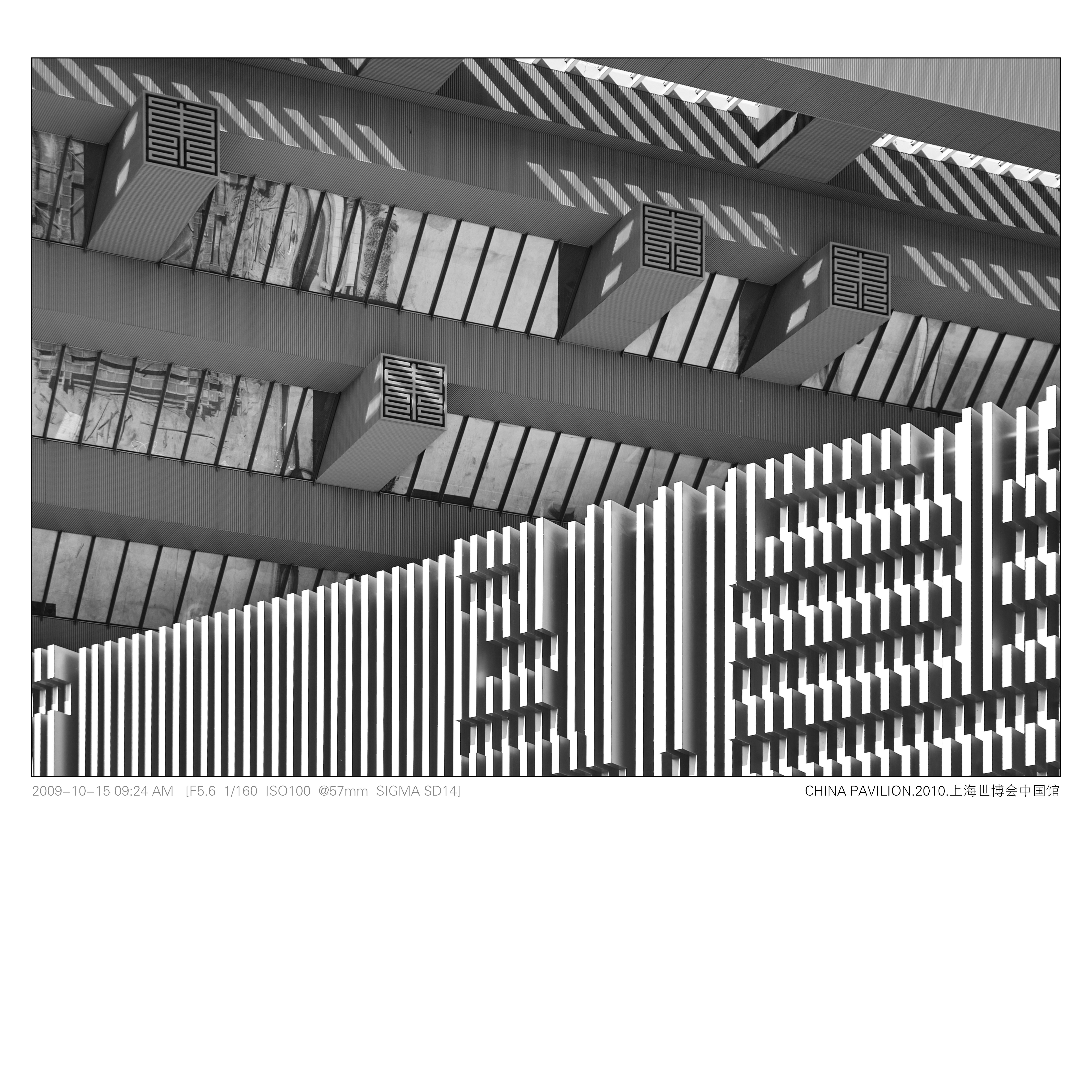 这一方案的点睛之笔出现在方案闯进八强后的深化修改阶段。当时,听了外界的建议,张利一下子想到了九叠篆。“这是一种特殊的篆字,源起于隋,兴盛于宋,多用于官式印章镌刻”,张利说。九叠篆的字体折叠堆曲、布局匀称、端庄且不失华美,古韵悠悠。它还有一个特点令设计师欢喜不已:九叠篆可以有五叠、六叠,也可多达九叠、十叠,每个字的笔画折叠并无定规。这便为设计师留下了足够的设计空间,既可以尽情施展,摇曳衍生出精美的纹样,又可以随需应变,将各种建筑元素置于蜿蜒曲折的笔画之间。既满足了功能需要,又无损美感,可谓一举多得。张利创造性地将九叠篆用在建筑外表面,作为装饰纹样,成为方案的点睛之笔。上海世博集团副总经理施建培曾用两个字来形容这一改动:惊艳。