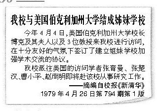 1978年 6月 23日,邓小平同志在听取方毅、蒋南翔、刘西尧、刘达等汇报清华大学工作时,对派遣留学生工作做出了重要指示。遵照邓小平的指示,1978年12月,我国向美国派遣了新时期第一批留学人员 52名,其中清华教师9名。这是清华国际合作与交流的重要里程碑,也拉开了我国教育领域改革开放的序幕。