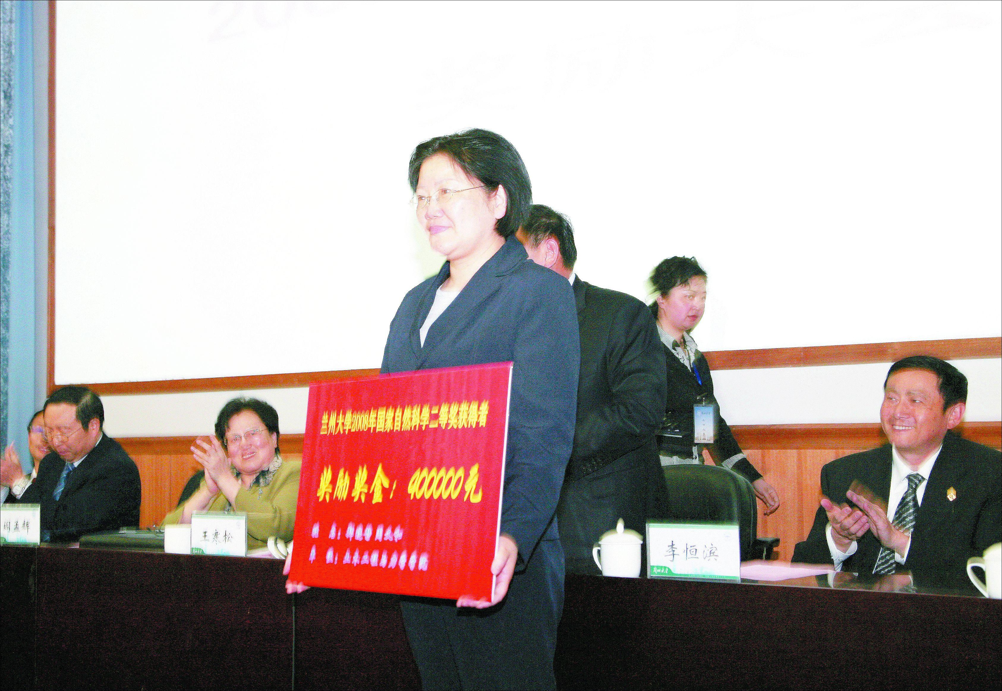 在雄壮的乐曲声中,学校领导、校长助理为获奖个人和集体颁奖,郑晓静、南志标、周绪红、马建泰、陈怀录、包国宪等人先后上台领奖。