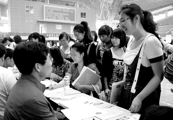 一些因为在前几次的应聘中眼光太高而多次遭受拒绝的同学,在这次招聘会上发现相对要求较低的民营企业可能是比较好的选择。文学院新闻系的郭海涛告诉记者,以前他也参加过几次招聘会,但因为待遇方面没有达到自己的要求或没有适合自己专业的岗位,所以一直没有找到理想的工作。毕业在即,由于民营企业对专业的要求较低,所以趁着这次机会,希望自己能找到一份待遇不错的工作。