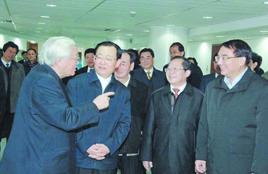 9时10分,王刚一行在中共吉林省委书记王岷、省长韩长赋、省政协主席王国发、长春市委书记高广滨、省委秘书长房俐等省市领导和我校党委书记陈德文、校长展涛等全体校领导的陪同下,首先来到了我校国家级生物实验教学示范中心。中心主任滕利荣教授向王刚介绍了该中心课题项目、实验流程、科研成果、论文发表等情况。王刚还走进实验室微笑着向正在做实验的同学们问好,亲自透过显微镜观察人工培育冬虫夏草的实验图像,并询问了培育条件、研究成本、药效功能等细节,对实验室开展这样的利国利民的研究项目以及纤维素酶水解玉米秸杆制备燃料乙醇的研究等大学生自主创新实验给予了充分肯定和鼓励。