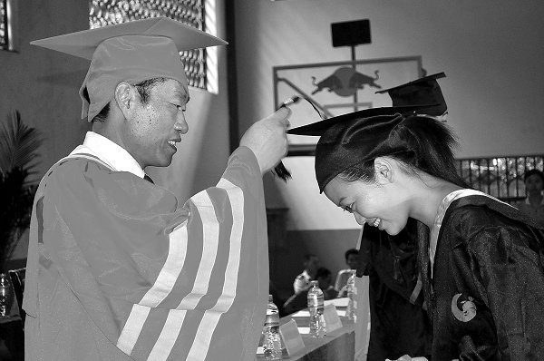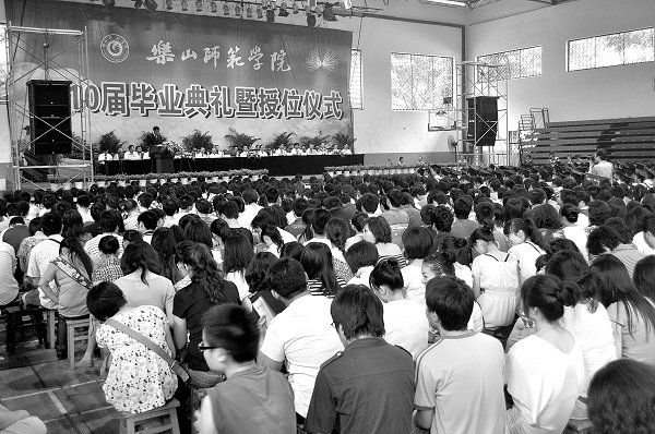 《乐山师院报》 - 第8期 四年求索凝成今日的收获 母校壮行激励未来的开拓 摄影:张晓萍 2010-06-29T16:00:00.000Z 262 党委书记谭辉旭为毕业生授位党委副书记、校长罗大玉为毕业生拨穗