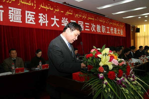 大会在庄严的《国歌》声中开幕,校党委副书记张同法主持大会。代表们认真听取了哈木拉提·吾甫尔校长作的《2010年工作报告》,认真听取了张向阳副校长作的《新疆医科大学三届二次教代会提案处理及三届三次教代会提案受理情况的报告》和张刚强副校长作的《新疆医科大学2009年财务预算执行情况和2010年财务预算安排的报告》。