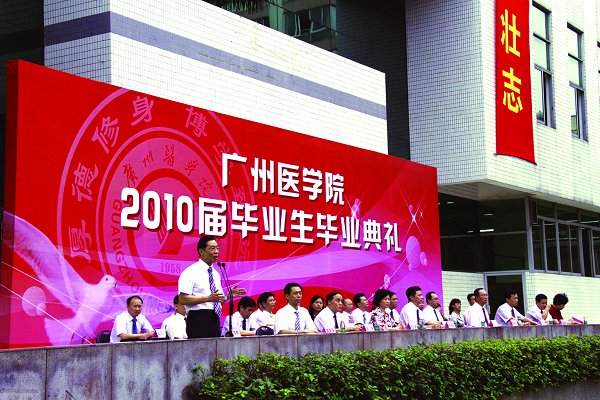学校全体领导、老校长钟南山院士出席了典礼。学校相关职能部门负责人、各二级学院党政主要领导及校本部2010届全体毕业生参加了典礼。典礼由副校长魏东海主持。