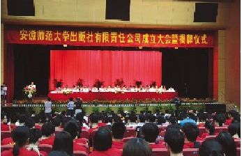 本报讯 6月28日上午,师大校园内,彩旗飘扬,气球高悬,安徽师范大学出版社有限责任公司成立大会暨揭牌仪式在花津校区大礼堂隆重举行。省委常委、省委宣传部部长臧世凯,副省长谢广祥,国家新闻出版总署综合业务司司长余昌祥,省政府副秘书长张武扬,省委教育工委书记、省教育厅厅长程艺,省新闻出版局局长郭永年、教育部社科司出版管理处处长魏小波、芜湖市委、安徽工程大学、皖南医学院、安庆师范学院等单位领导到会祝贺,原安徽省委书记卢荣景、原安徽省省长王郁昭以及求是杂志社、人民出版社等280多家单位和个人发来贺信、贺电。省直有关单位,芜湖市委、市人大、市政府、市政协,在芜高校,部分出版发行单位和地市文化、教育部门的领导以及我校党政领导、师生代表出席成立大会,校长王伦主持大会。