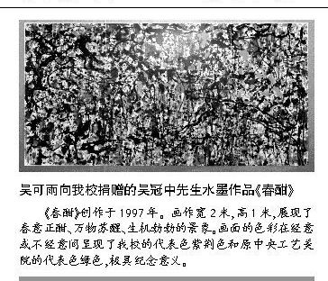 吴可雨向我校捐赠的吴冠中先生水墨作品《春酣》