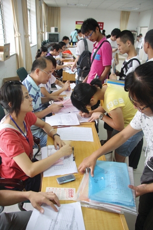 在学生社区,来自台湾的新生陈亭佑在认真地填写表格,他的父亲站在一旁怜爱地看着,他笑着对记者说:“慕名华侨大学的学习风气好,所以把女儿送来华大啦。”