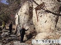 渐渐的,整齐的石阶变成了林海山道,岔路多了起来,我们一阵茫然,浓重的林海遮挡着视线,站在大石头的高处也望不出开阔的视野。好不容易见到两个行人,向他们问路,他们一边回答着“也是第一次来,不识路”,一边与我们擦肩而过,选了一条路坚定不移的向前走。我们没有这份坚信,也没有太多的时间,只好原路返回,值得庆幸的是王磊教授在这条少为人知的山道上发现了一处教育遗产。