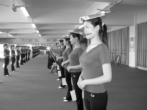 为了更好地展示颁奖礼仪风采,35名女生志愿者早在5月份就开始进行封闭训练,队列、舞蹈、形体、活力操、化妆都是她们的必修课。尤其是在穿高跟鞋训练队列的项目中,许多女生觉得很不习惯,穿久了,脚后跟就被磨出水泡,连走路都疼痛难忍,但是她们咬牙坚持训练,从早上6点10分开始,到晚上10点结束,每一天都经历着幸福而又疼痛的蝶变之路。