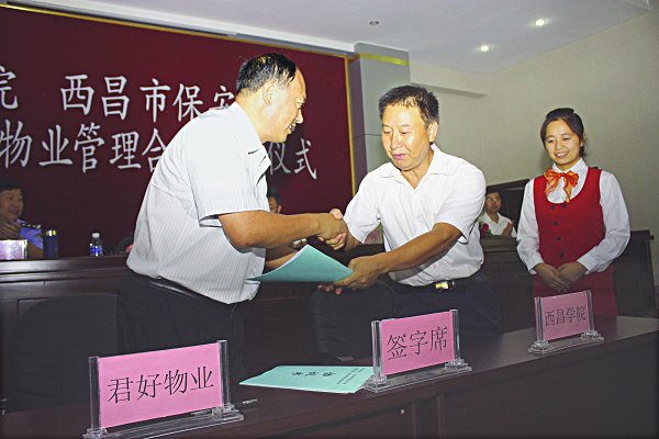 《西昌学院报》 - 第40期 图片新闻 2010-09-24T16:00:00.000Z 121 州人大副主任马布 都、西昌市副市长高勇率 州市卫生局、食药局、卫生 执法监督支队、技术监督 局、工商局一行20 余人到 我校检查食品卫生安全工 作。 图/文 李诤 我校引进社会力量, 创新校园管理机制,以期 推进学校治安和物业管理 水平再上一个新台阶。图 为院长夏明忠与西昌市君 好物业总经理李清荣签订 了校园治安、物业管理合 作协议。 (宣传部)