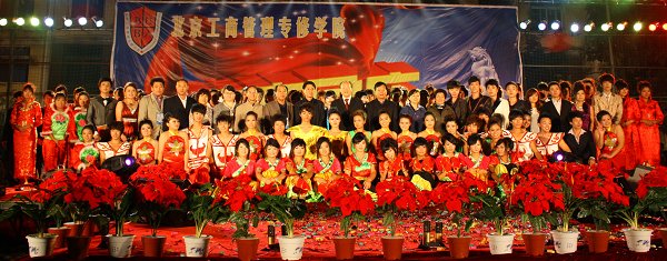 北京工商管理专修学院2010$“欢度国庆”大型文艺晚会于9月29日晚6:30在我院足球场隆重举行,学院董事会、院领导、四建工会领导、南口镇政府等各界领导均应邀参加。学院举办方北京建工四建工会主席、党委副书记刘春生也出席了此次晚会,并对学院活动给予了高度重视和大力支持,精心编排了精彩节目,与广大师生共同度过了一个令人难忘而又愉悦的夜晚。