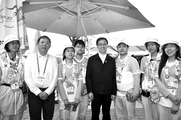 俞正声书记走访了园区志愿者休息室,与鲁睿婷、李燕等同学一一握手,并亲切询问了我校志愿者的工作情况,对志愿者们的优秀表现表示肯定,鼓励大家继续努力,圆满完成世博服务工作。
