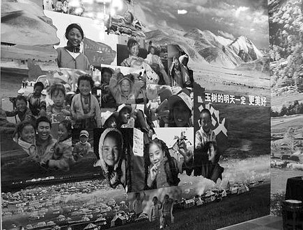 我们是怀着沉重的心情进入图展区的,墙壁上挂满了照片,有国家领导慰问时悲伤而温馨的画面,有震后的一片片废墟,有救灾战士奋不顾身的情景,有医护人员奋力抢救受伤群众的身影,还有社会各界踊跃捐助的场面……每一张照片都真实地记录了当时的灾情,灾难摧毁了玉树人民的家园,但无法泯灭玉树人民的信念。从这些图片中,我深刻感受到了展览的主题:玉树不倒,青海长青。