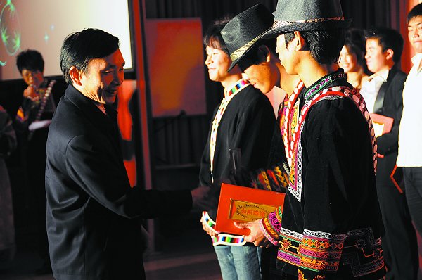 乐山市民族事务委员会副主任张叶,乐山市民族事务委员会办公室主任龚建平,我校党委副书记杨胜宽,机关党总支书记、党委宣传统战部副部长罗松乔为获得一、二、三等奖的获奖选手颁奖,手持奖杯和证书,选手们脸上漾满了笑容,“今晚的荣誉是对我们的肯定,更是对我们的鼓励。”获奖选手高兴地说。