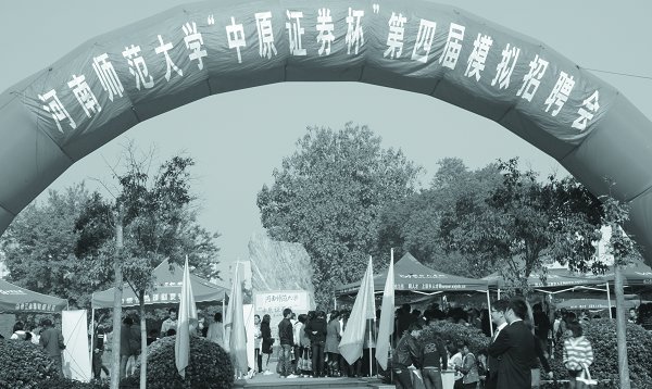说到实践平台,大学生职业规划与就业服务协会近日举行了第四次模拟招聘会。会长王志刚说:“我们社团已经连续四年举办模拟招聘会,今年共有十一家单位现场模拟招聘,其中有五个单位是真实的招聘,这是今年模拟招聘的一个亮点。”据悉,历年模拟招聘会以大三、大四为主力,其中也不乏大一大二的同学。“模拟招聘会具有实践意义,考查面试者的心态、思想等各方面的 素质,学生借此可以积累经验。在面试中,通过和面试官交谈可以了解企业需要什么样的人才,对以后的学习有一定指导,为将来毕业找工作提供借鉴。”王志刚告诉记者。参与本次模拟招聘会的单位主要有师大附中、中原证券、生命人寿保险、新乡电视台等等,基本上覆盖了新乡知名企业。文字编辑、主持人、摄影、律师助理、网页设计师、网络营销顾问等热门行业更是受到大家的欢迎。模拟招聘会每年都吸引了将近千名同学的积极参加。一切为了学生在就业形势日益严峻的情况下,我校就业指导服务中心开展了有利于大学生就业的指导工作。“举办师范生、非师范生专场讲座”、“举行鼓励大学生创业、创新职业比赛”、“对特定考试学生进行考前培训”……“就业大讲堂”与“民营企业进校园”则是其中比较具有特色的活动。“就业大讲堂针对毕业生这一群体特点和求职择业需求,开展一系列就业、创业专题讲座。与此相比,民营企业家进校园则把社会上的成功人士请到学生面前,这样就建立了企业家与大学生直接交流沟通的平台。”就业指导服务中心信息科科长康海军说到。同时,就业指导中心在去年创刊 《就业指导报》,涵盖面广,针对不同年级学生出版不同刊期,今年《就业指导报》对大一新生推出新生特刊,指导新生刚进校就做好大学和就业规划。