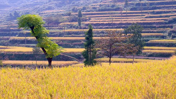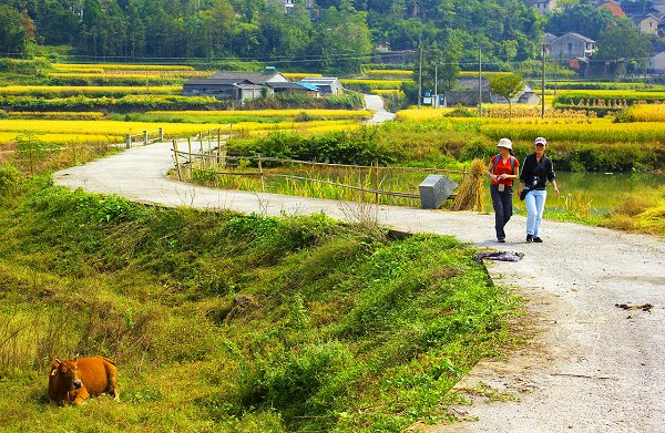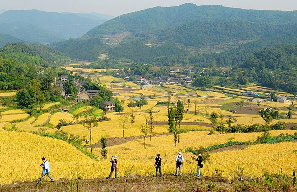 金秋十月,稻谷飘香。摄影俱乐部成员向奉化大堰古镇挺进。他们驱车来到大堰西畈山脚,然后徒步而上。一路上,教师们的数码相机不时地摄下优美的自然风光,其乐融融。到了山顶,极目远望,山坳稻谷金黄,大自然壮美的景色给了每一位摄影者愉悦的心情、无穷的乐趣。
