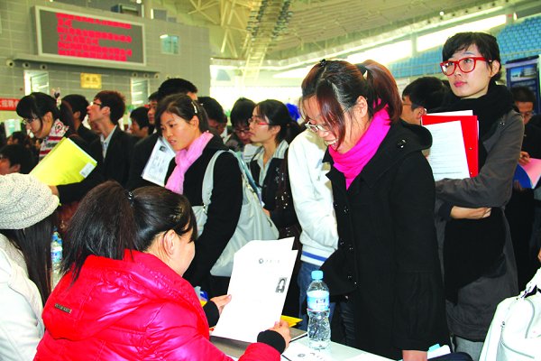 一大早,青岛啤酒集团、山东电力等用人单位的招聘台前就排起了长长的队伍,而在企业招聘人员问及应聘者对岗位的选择时,却出现了“哪个都可以”的回答。