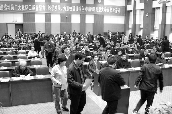 编者按学校第七届教职工暨工会第十五次代表大会于12月10日至12月12日隆重召开。在为期三天的会议中,十支代表团就学科优势及特色建设等议程进行了讨论。大会通过了决议,参会的216位代表共选举十五届工会委员会委员23人,七届教职工代表大会提案督办委员7人,工会经费审查委员5人。本次大会对学校发展学科优势、创建研究性大学具有重要意义。