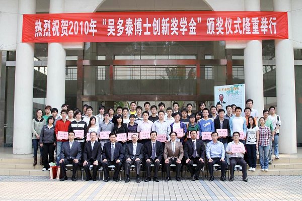 我校教务处负责人首先宣读了2010年度关于 “吴多泰博士创新奖学金”表彰文件,31个优秀团体和55名优秀个人受到表彰,领导、嘉宾为获奖的团体和个人颁奖。