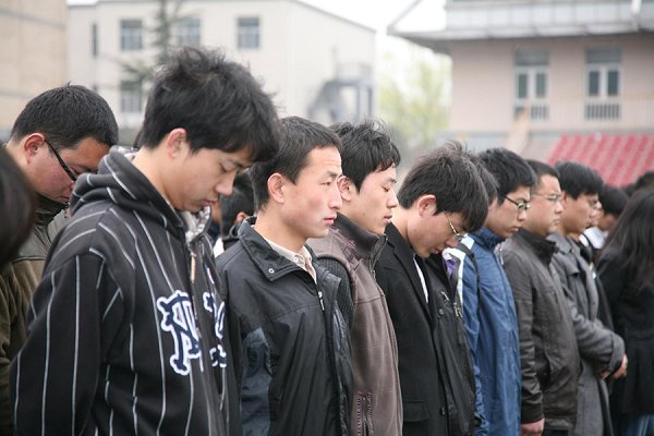 现场气氛凝重、肃穆。广大师生在对遇难同胞表达深切哀悼的同时,大家表示,经过这场重大灾难的考验,我校师生将和全国人民一道,同舟共济,共渡难关。